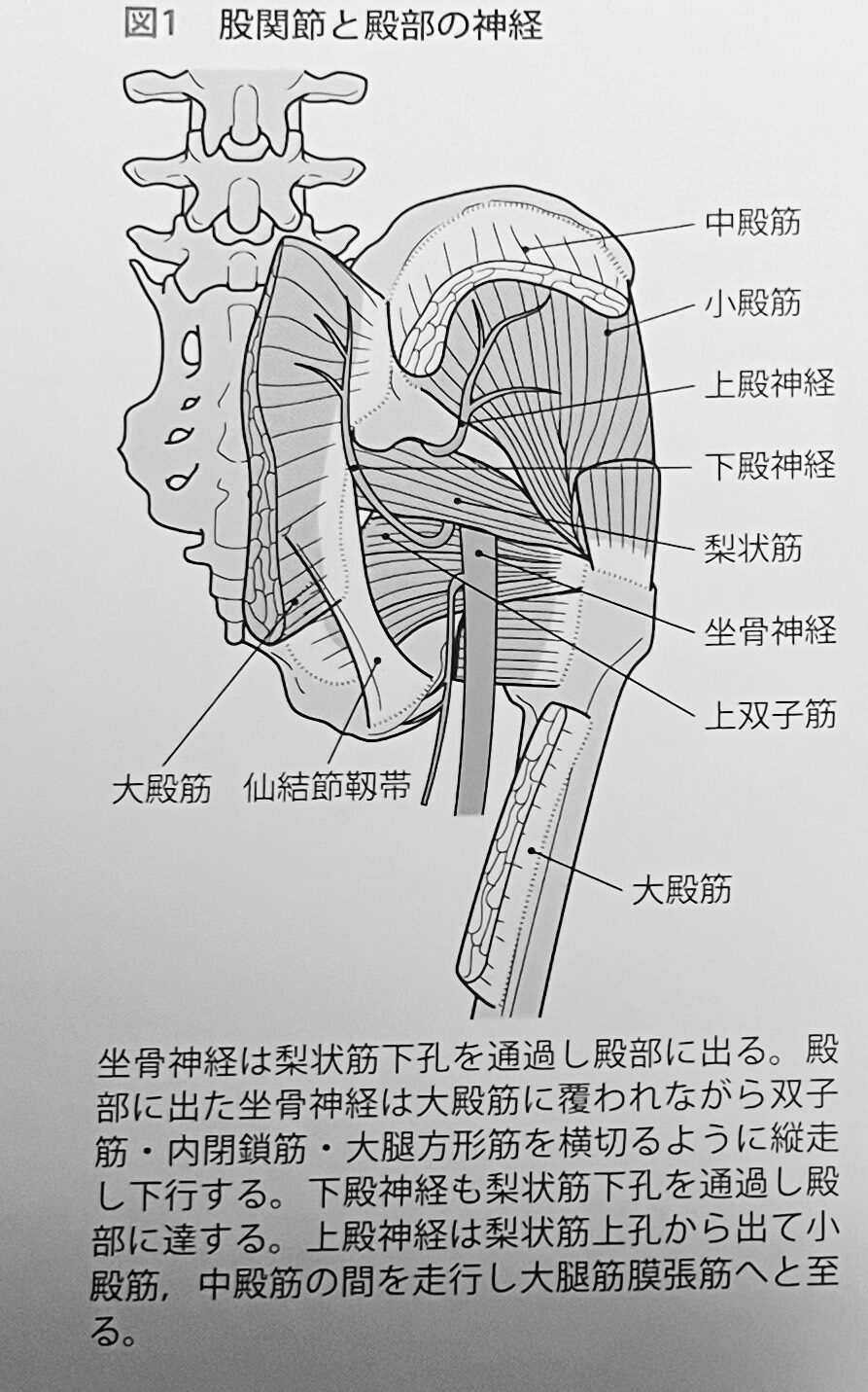 梨状筋の周囲には、お尻や脚に伸びていく坐骨神経をはじめとした様々な神経が走っています。